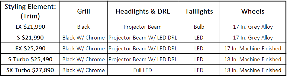 The Kona is by far not boring but is definitely becoming dated, approaching four years with out a face-lift, but thankfully their is a new one on the way soon. The front of the Kona has Hyundai’s current style, DRL (Daytime Running Lights) up top and main headlights down low. It also has the typical Hyundai’s grill which looks good on this car. The lower headlights give the Kona a unique style. Down the sides it also has plastic cladding like the Kia. Around back, the turn signals and reverse lights are integrated into the cladding which is interesting and unique. Throughout the trim range there is not a lot of differences, the lower three trims look very similar and the top two resemble each other even more.